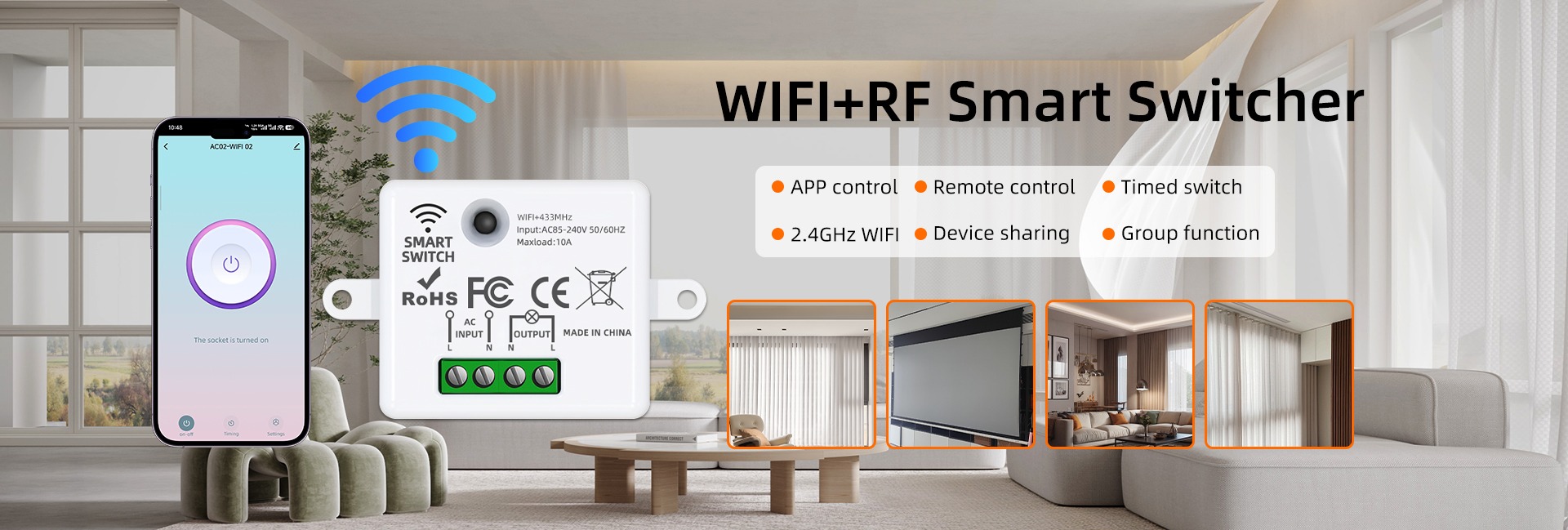▸ Smart Home application Remote Control:IoT Switches,Wi-Fi/BLE enabled power systems (For Lighting/Electric curtain)